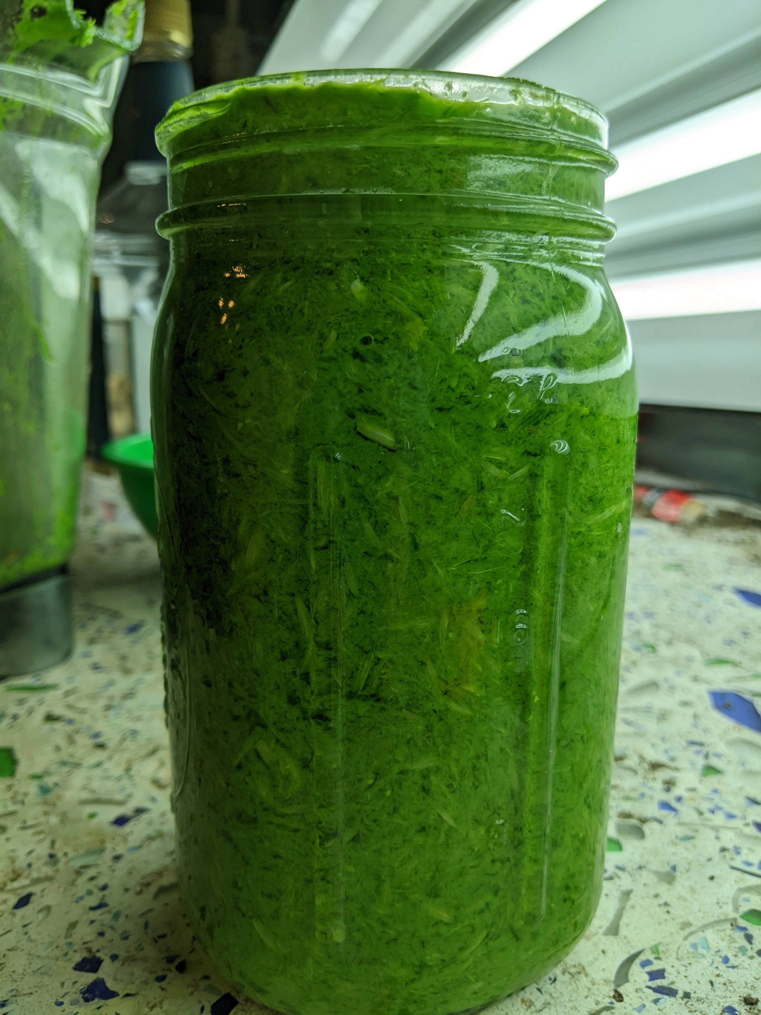 It spoons out of the blender like a thick stew. We put it in a jar in the dark for a month, and then strain it out. It stays a nice bright green for awhile, but eventually darkens. We made a nice big jar this year, and have been enjoying it during stressful times as part of our bitters blend. I especially love the fact that we made this medicine out of a cover crop that was improving our soil while it grew. Permaculture in action!!