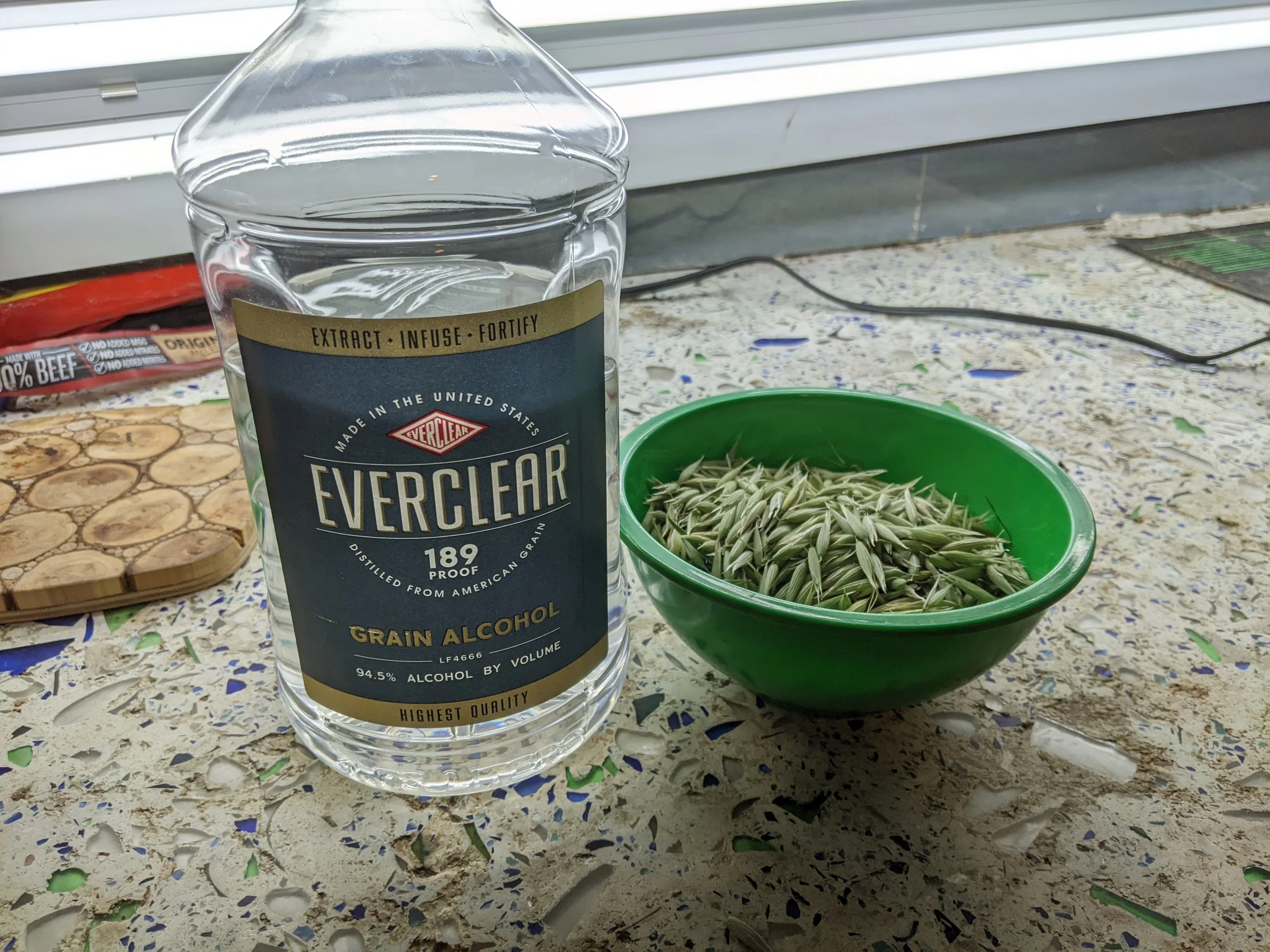To make the tincture we use a high proof alcohol; the fresh grains have a good deal of moisture, which brings down the alcohol content.